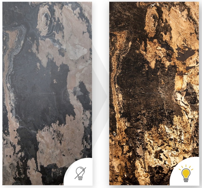 Fornir kamienny Autumn Rustic Transparentny to wyjątkowy materiał, który łączy w sobie naturalną piękność kamienia z unikalną barwą i transparentnością. Dzięki swojej wyjątkowej palecie kolorów, idealnie wpasuje się w projekty, które wymagają ciepła, elegancji i ponadczasowego charakteru. Transparentność materiału umożliwia uzyskanie fascynujących efektów świetlnych, co sprawia, że jest to doskonały wybór do wnętrz, które potrzebują dynamicznego, ale subtelnego wykończenia.